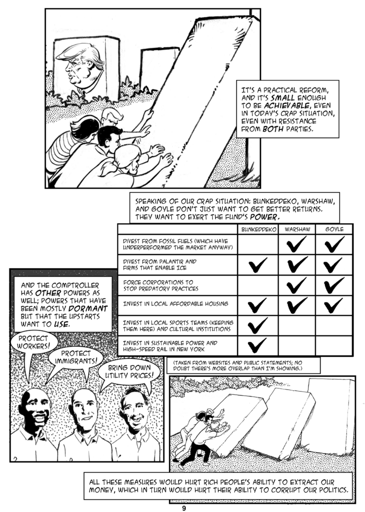 You’ve been wanting to read a comic about the intersection of New York’s matching fund program and the comptroller’s race, haven’t you? Admit it.