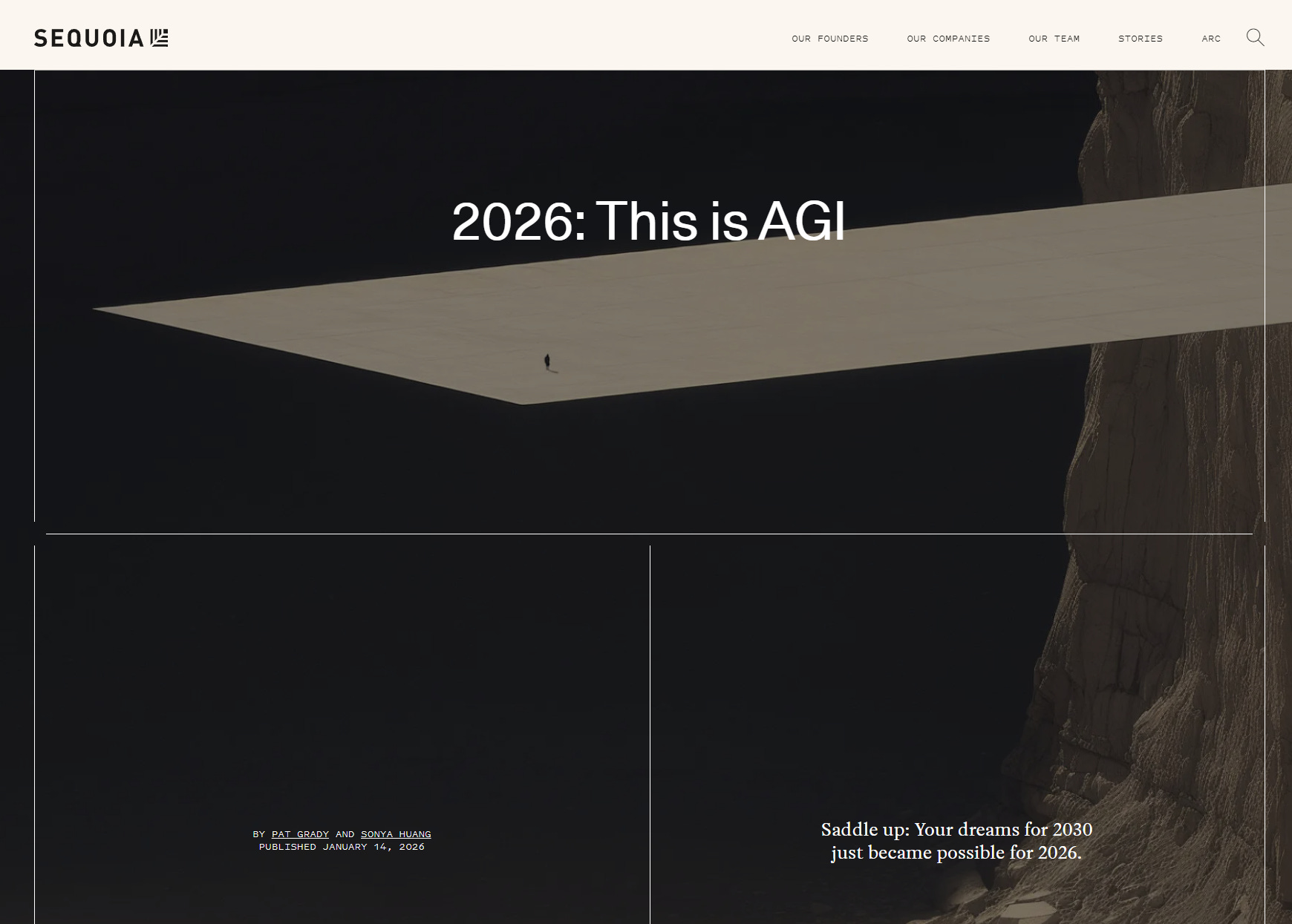 Not even three weeks after I published Predictions and Prophecies for 2026, Sequoia Capital released a white paper called 2026: This is AGI” with the provocative header “Saddle up: Your dreams for 2030 just became possible for 2026.”